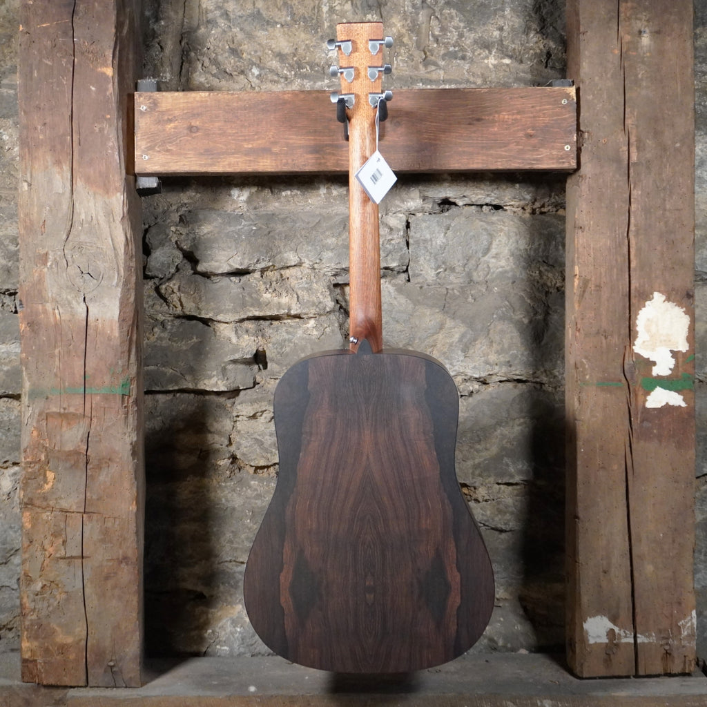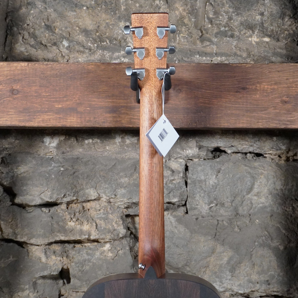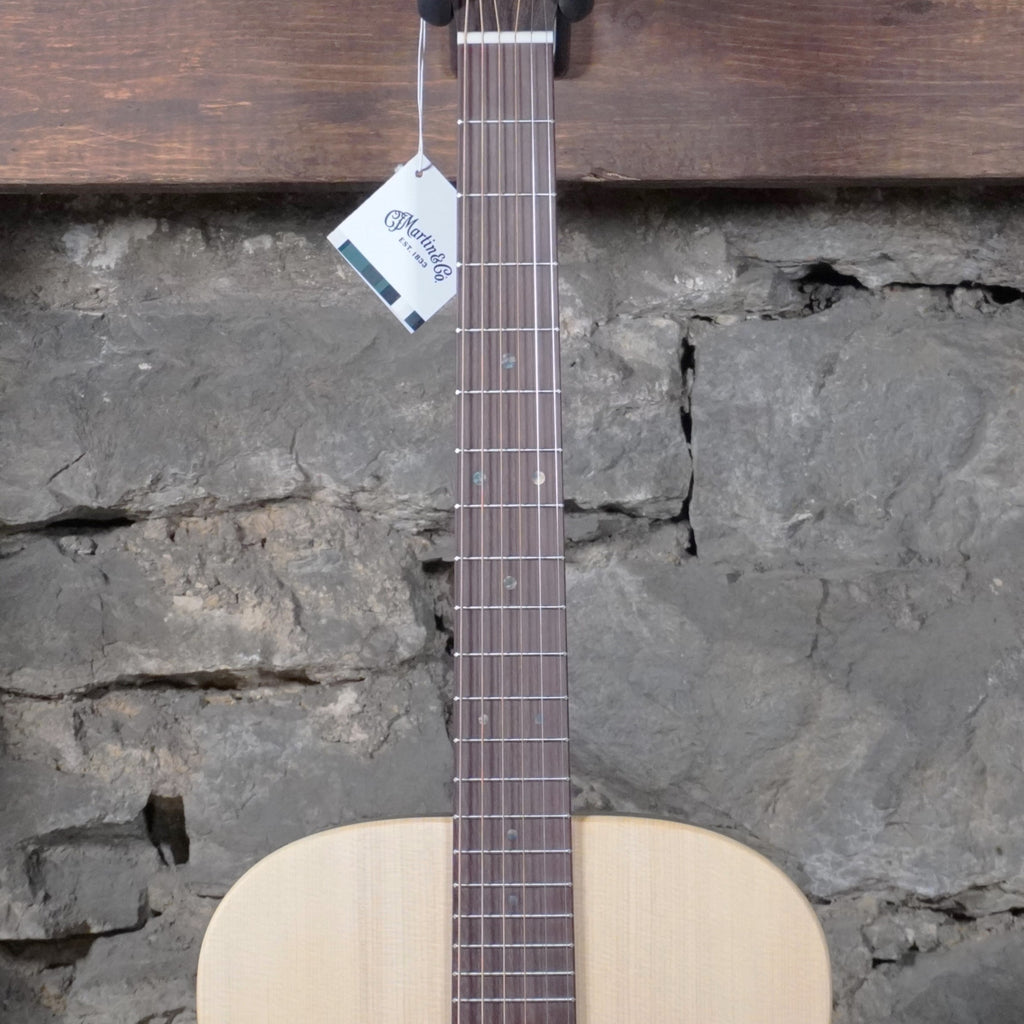 The X Series is made to play. The acoustic-electric D-X2E features the iconic Dreadnought body shape, now available in three eye-catching high-pressure laminate (HPL) patterns—mahogany, Brazilian rosewood, or ziricote. The satin spruce top features an elegant abalone pattern rosette, while HPL back and sides give you durability and classic Martin style. Playability enhancements include a thinner fingerboard with a gently beveled comfort edge and refined string spacing, and a modernized bridge contour for a smooth and comfortable playing experience. Its signature size is loud and projective with strong bass, lending itself to any genre and experience level. The D-X2E also features a select hardwood neck, fingerboard, and bridge, and Martin E-1 electronics with a built-in chromatic tuner and volume, tone, and phase controls, letting you plug in and play at any volume. All X Series models come with a softshell case.