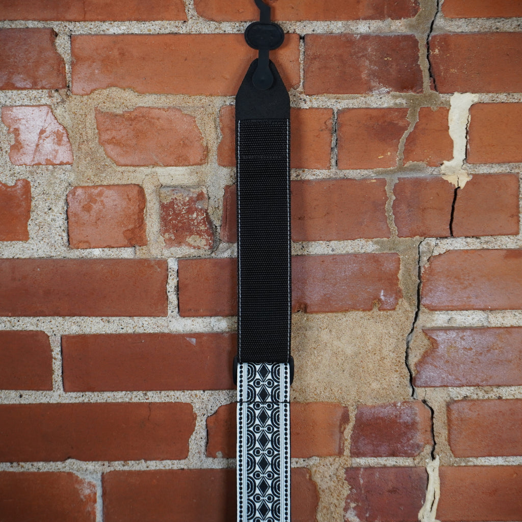 For sale at Jackson Audio & Music Supply is this cool looking guitar strap from Ernie Ball. Their Classic Jacquard Guitar Straps feature unique retro designs and gives you a quality strap for you guitar. These straps are available and in stock at JAMS. Come visit our store location and see them in person or take advantage of our shipping option. The Beatnik Black has a unique pattern of Black and White color combinations for a cool sleek feel.